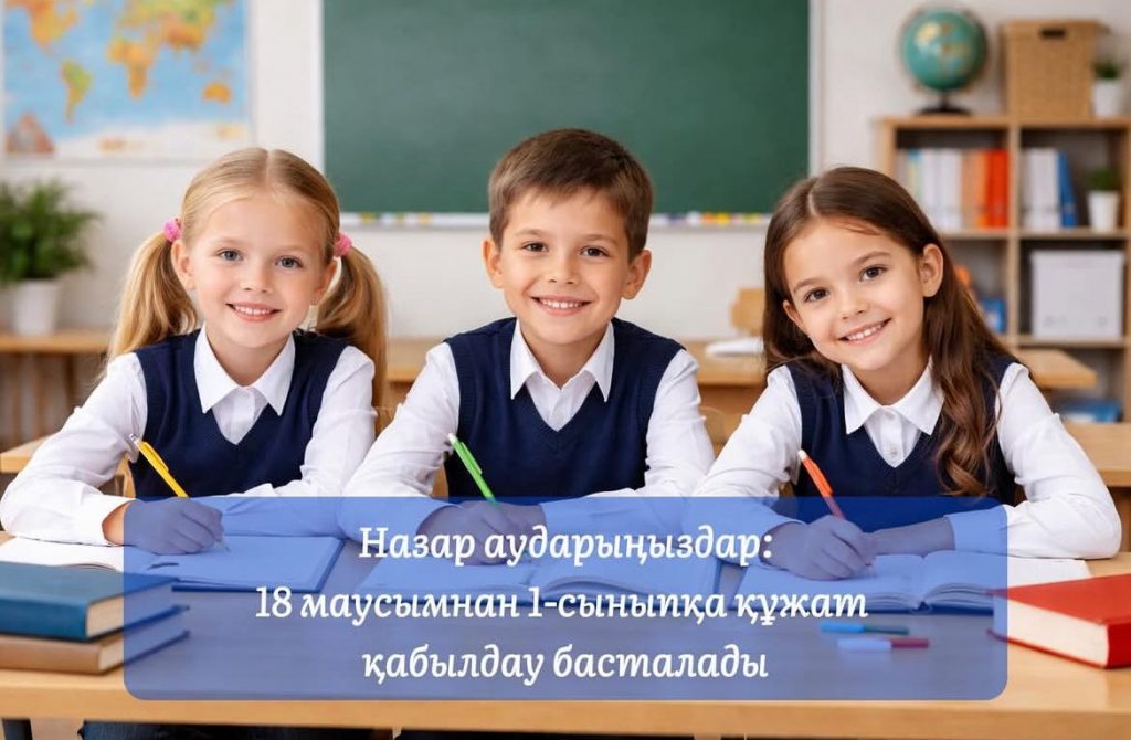 Павлодар облысында 1-сыныпқа құжаттарды қабылдау ағымдағы жылдың 18 маусымынан 31 тамызына дейін жүргізіледі.